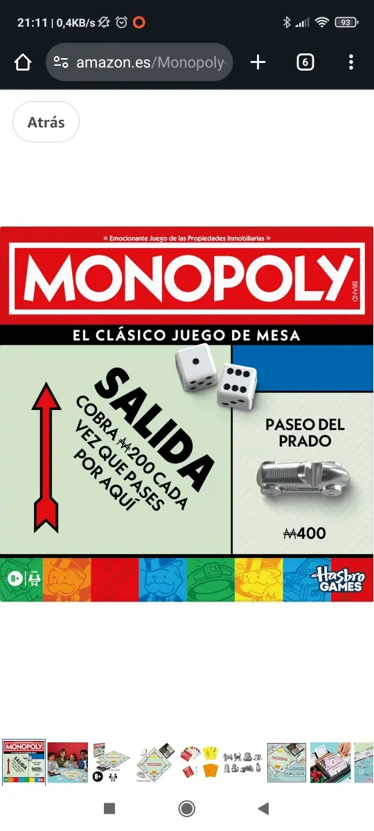 Detalles del productoEl clásico juego de mesa Monopoly, perfecto para disfrutar en familia.