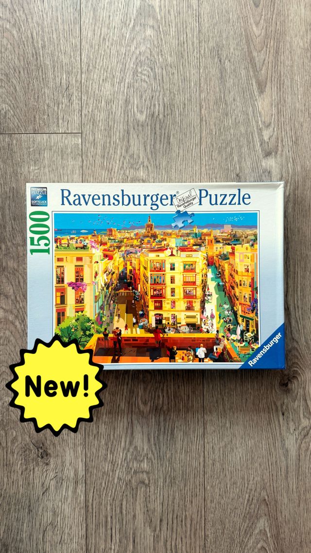 Detalles del productoPuzzle nuevo de 1500 piezas de la marca Ravensburger, con una ilustración de Valencia. Nuevo y precintado. La caja tiene una esquina golpeada, ver fotos.