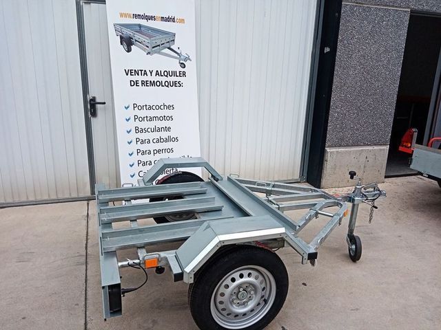 Detalles del productoNUEVO: Remolque galvanizado para motos de trial con MMA 500 kg. Llantas de 13 pulgadas. Cola de luces extensible. Medidas plataforma de carga 160x110 cm. (con la cola de luces recogida). Se puede poner en vertical para que ocupe poco espacio y queda con una longitud total de 224 cm. Ajustes para la rueda delantera, rampa de subida, rueda jockey de Ø 48 mm opcional. PRECIO 890 € + IVA Otros remolques nuevos en stock y también alquiler.