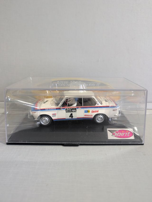 Detalles del productoCoche de slot a escala 1:32 de la marca Spirit, referencia 601302. BMW 2002 decoración equipo oficial #4, rally de UK del WRC de 1973, pilotado por Bjorn Waldegard. Spirit fue una marca considerada la antecesora espiritual de la actual AvantSlot. Válido para pistas de cualquier marca (fly, scalextric, scx, scaleauto, superslot, ninco, slot.it, policar, carrera, etc).