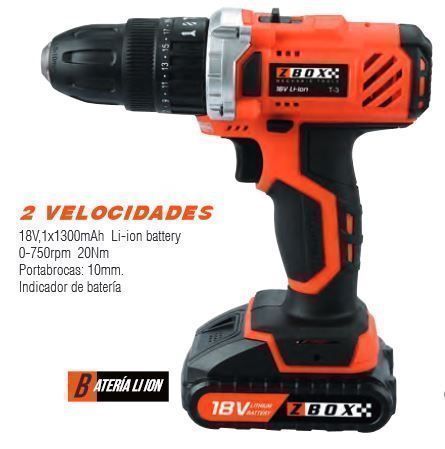 Detalles del productoNUEVOS: Taladro a batería de 18 v - Portabrocas automático - Selector de fuerza - Velocidad variable - Luz led - Giro reversible - Batería de 1300 mAh - Fuerza máxima 32 Nm - Incluye cargador y batería. IVA NO INCLUIDO