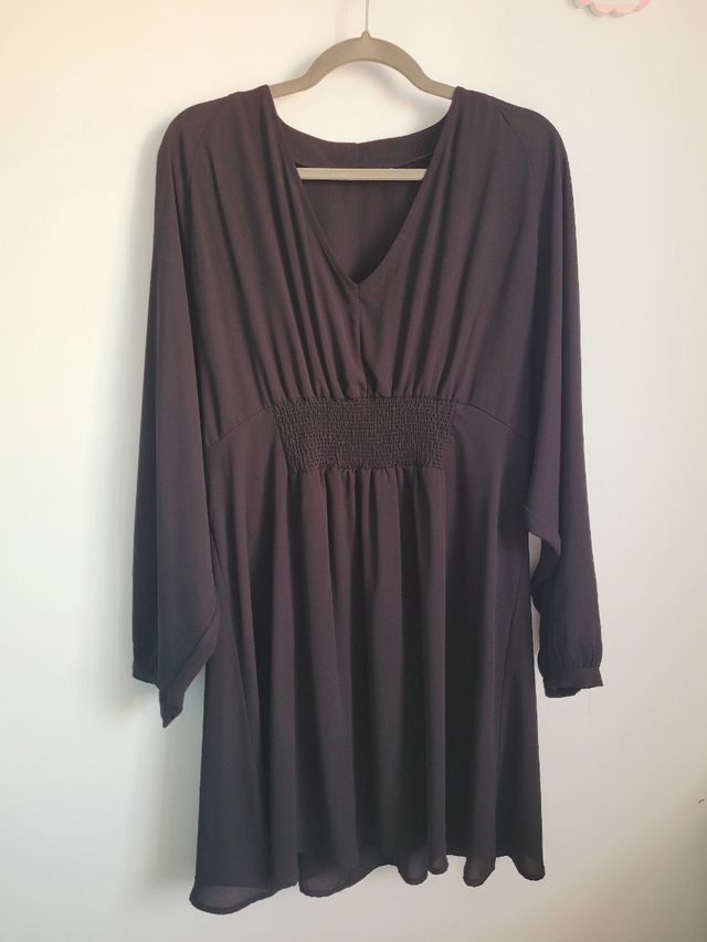 Vestido Marca Only. Talla XXL, equivale a una 44 incluido 46 porque es muy amplio y cole levemente a la cintura. Color negro, el tejido es de gasa super bonito. Se puede poner solo o con el cinturón que también le da otro look diferente. Las mangas son anchas. Escote de pico, muy sexy. Está nuevo, sin signos de uso. Me queda grande, solo se usó una vez.