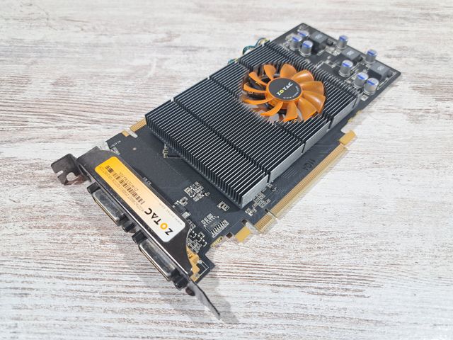 Detalles del productoTarjeta gráfica Zotac 9600 GT de 1 GB DDR3, modelo SYNERGY EDITION. En perfectas condiciones estéticas y de funcionamiento.