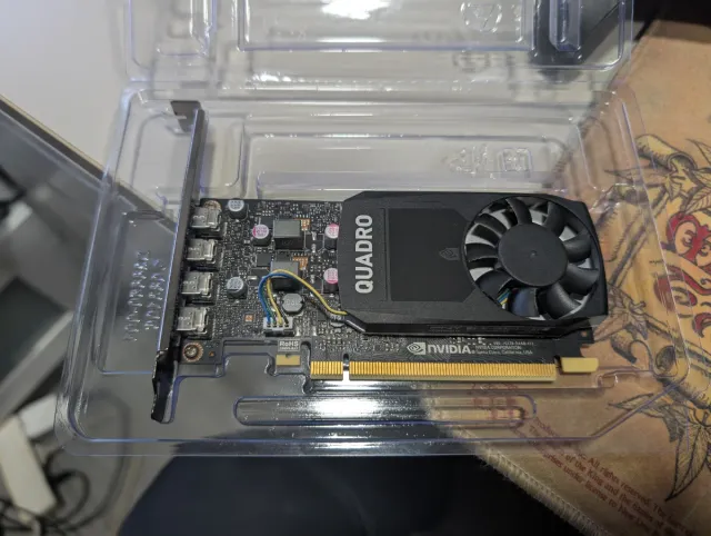 Detalles del productoTarjeta gráfica NVIDIA Quadro P620. En perfecto estado. Se vende por cambio a una tarjeta superior. Especial para trascodificacion