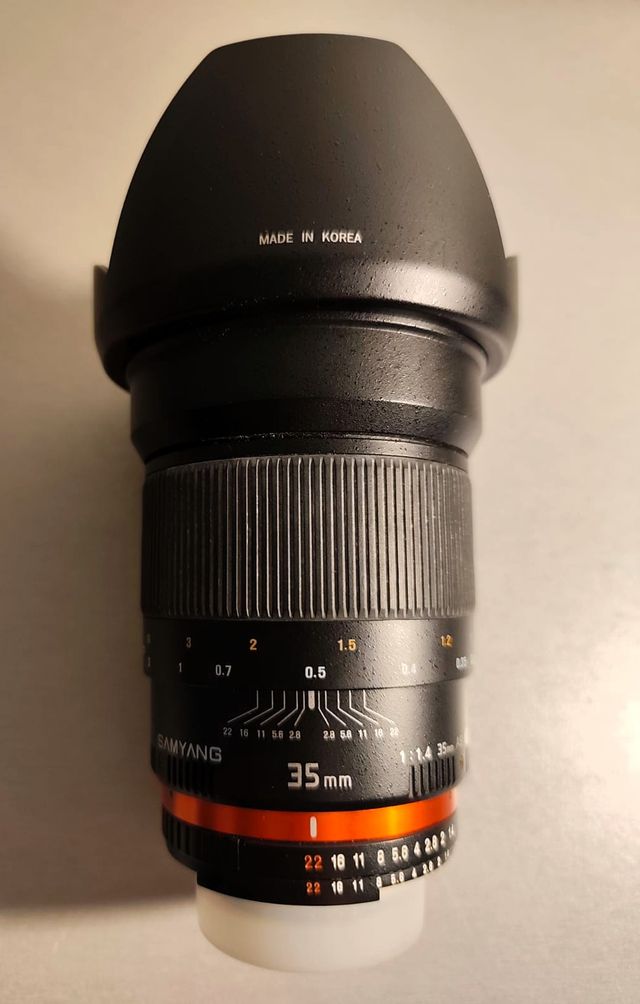 Detalles del productoSofisticado objetivo de Samyang 35mm para Nikon. El modelo 35mm f/1.4 AS UMC, se ha construido sobre 12 elementos dispuestos en grupos de 10. El objetivo incorpora dos lentes de cristal óptico con factor de alta refracción (HR), lo que reduce su peso y dimensiones. Es un objetivo gran angular, de focal fija, compacto y luminoso compatible con las cámaras réflex Nikon montura F con sensor APS-C o Full-Frame. Este objetivo gran angular es el idóneo para fotografiar paisajes, interiores, edificios, monumentos y vistas panorámicas; su alta luminosidad permite fotografiar en condiciones de poca luz.