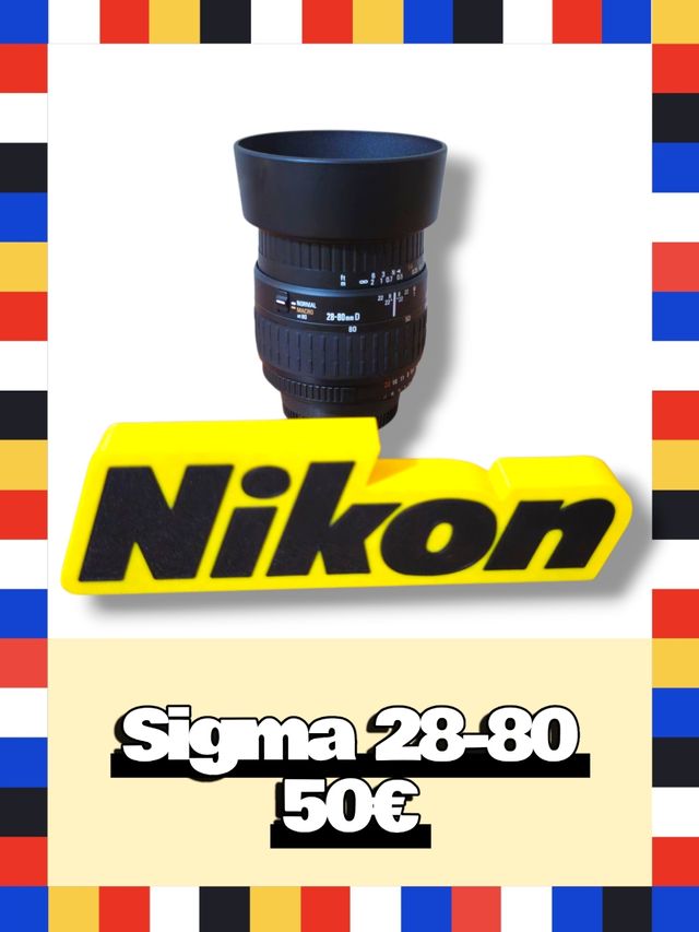 Detalles del productoObjetivo sigma 28-80,se encuentra en muy buen estado, para montura nikon.La línea Sigma UC fue diseñada para crear lentes ligeros y compactos. El Sigma 28-80 es un lente zoom estandar para cámaras APS-C y formato completo,con una distancia focal de 28-80 mm,se pliega a un tamaño muy compacto y pesa 380gr,la imagen no es perfecta, especialmente si dispara contra un fondo colorido, pero, en general, debido al fuerte desenfoque de 80 mm,se puede sacar algo interesante de la lente.El enfoque automático está disponible con éste objetivo sólo cuando se usa en las cámaras motor de enfoque incorporado.se puede enviar x 15€