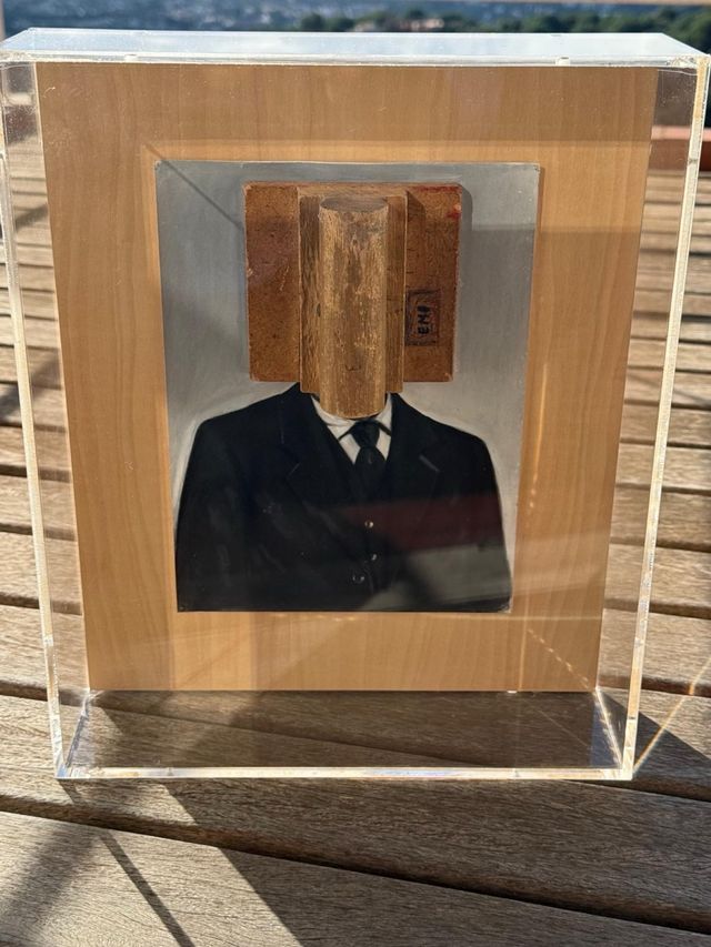 Detalles del productoPieza de arte original de Carmen Calvo, enmarcada en madera y metacrilato.