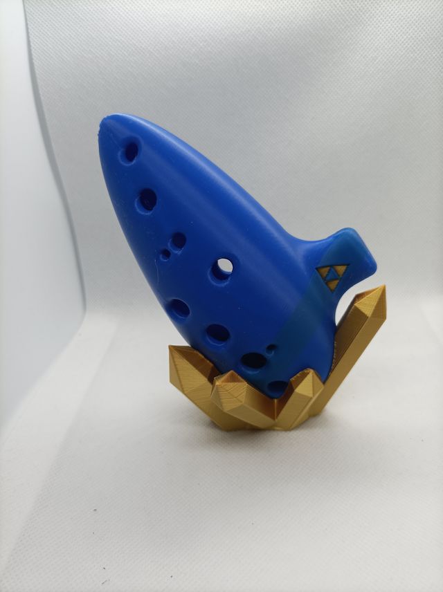 Detalles del productoOcarina inspirada en el videojuego Ocarina Of Time. Este instrumento musical tiene un diseño icónico y un color azul vibrante.