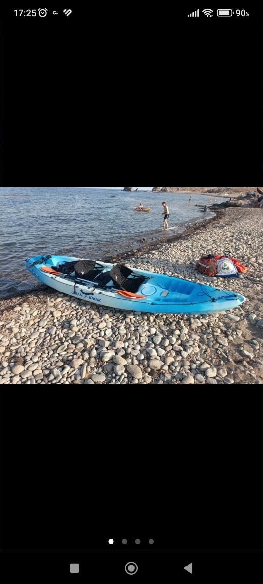 Se vende kayak rígido de 4 metros aproximados de eslora, con 2 asientos, 2 remos y 2 chalecos salvavidas. El kayak se encuentra en Almería.