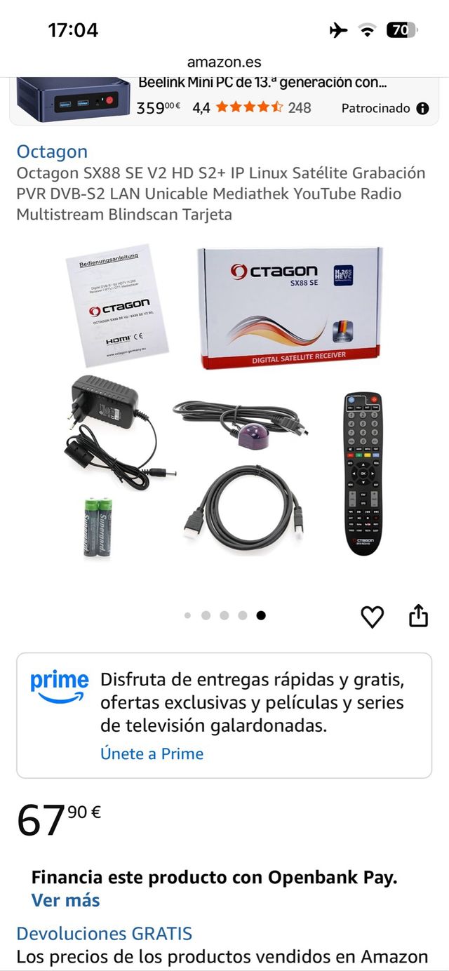 Octagon SX88 SE V2 HD S2+ IP Linux Satélite