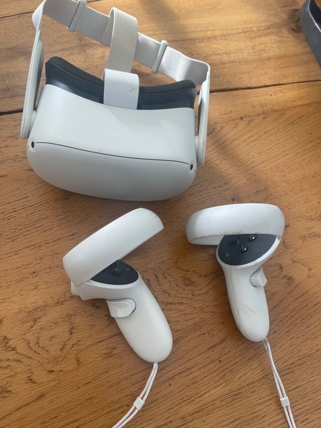 Detalles del productoCasco de realidad virtual Oculus Quest 2 en buen estado. Incluye dos mandos. El casco presenta algunas pequeñas marcas de uso. Los mandos también muestran señales de uso ligero. - Incluye casco y dos mandos. - Listo para usar.