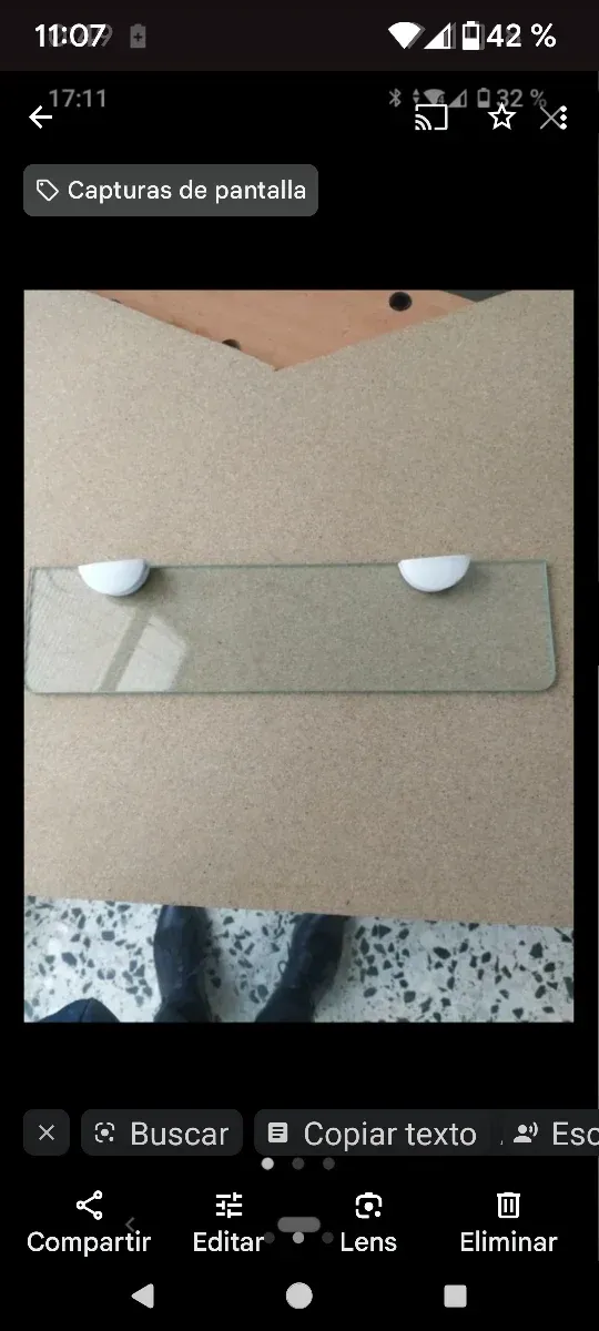 Detalles del productoBalda de cristal con dos soportes blancos., medidas 40