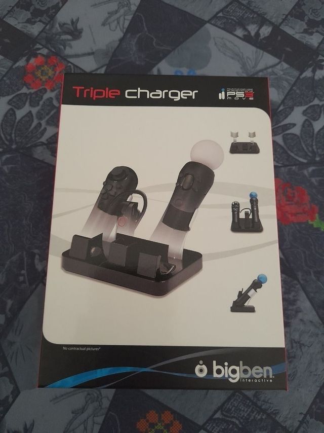Detalles del productoTriple cargador: para cargar el mando Move, el mando Navcon y los auriculares Oficial. Todo en Perfecto estado y funcionamiento. Precio fijo 14e VER FOTOS ⬆️ ENVÍO RÁPIDO Y BIEN PROTEGIDO DE LUNES A VIERNES: Final del mediodía con correos, final tarde con GLS,INPOST. +Juegos y accesorios PS2-3-4-5 en mi perfil: mando con cable, accesorios juegos deporte,mando inalambrico, escopetas,rifle,fusil,pistolas, hdmi, tarjeta memoria,fundas mandos,tb fundas PSVITA,fundas PSP,fundas Game Pad,mochila wii,funda Switch,funda Mario,Zelda,Pokemon,funda DSi XL,3DS XL,DS Lite,volante PSVITA,volante Game Pad,Xbox 360-One
