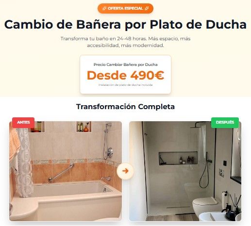 Detalles del productoOferta Especial - Cambio de Bañera por Plato de Ducha.