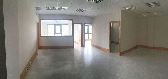 Tiene aproximadamente 120 metros construidos, es diáfana pero con dos despachos separados con tabiques.