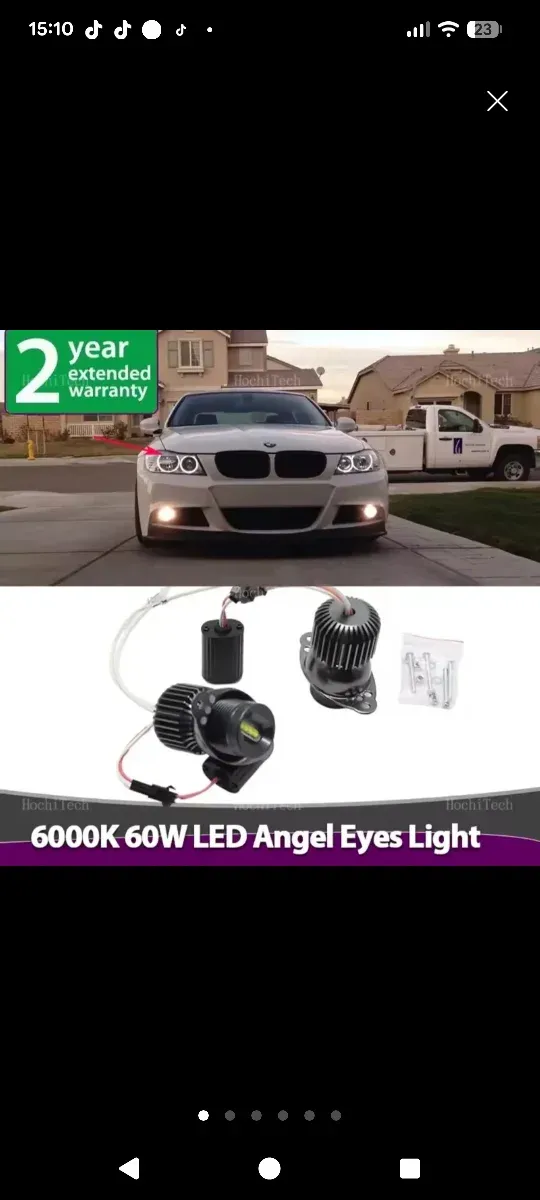 Detalles del productoLuces LED tipo Angel Eyes para BMW E90 y E91. Iluminación blanca de 6000K.