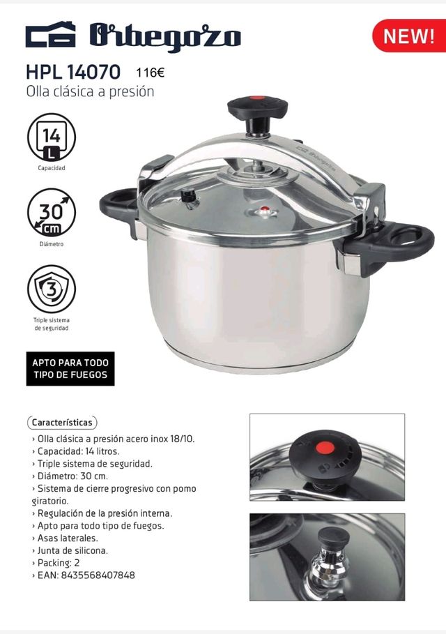 Detalles del productoOlla clásica a presión de la marca Orbegozo, modelo HPL 14070.
