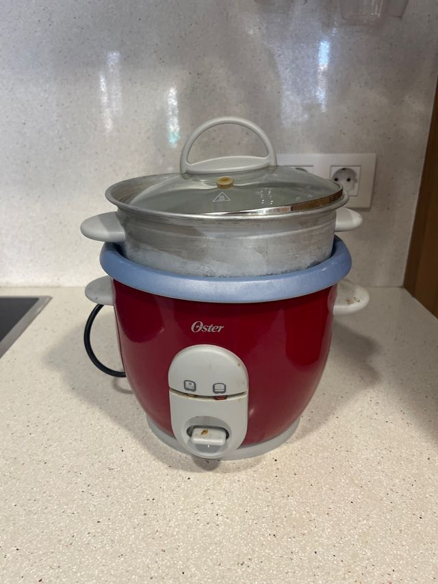 Detalles del productoOlla arrocera y vaporera Oster, ideal para preparar arroz y otros alimentos al vapor. Se encuentra en buen estado, aunque presenta algunas señales de uso.