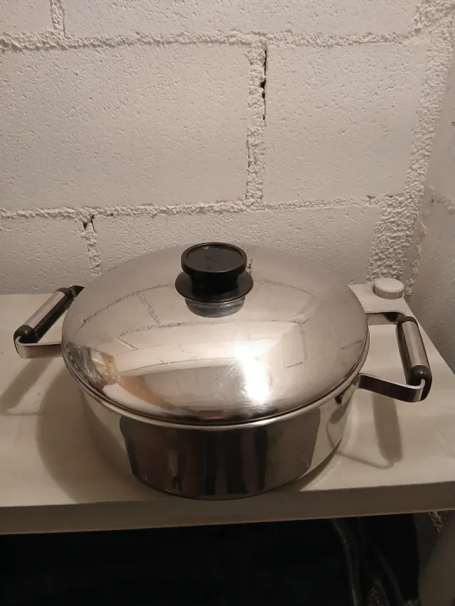 Olla de acero inoxidable con tapa. - Material: Acero inoxidable. - Diseño moderno y funcional.