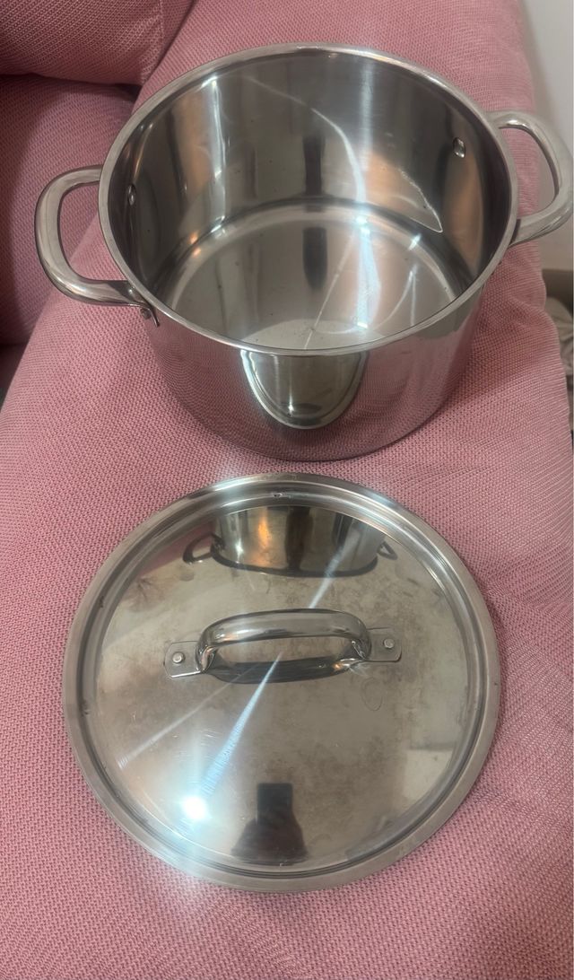 Detalles del productoOlla de acero inoxidable con su tapa.