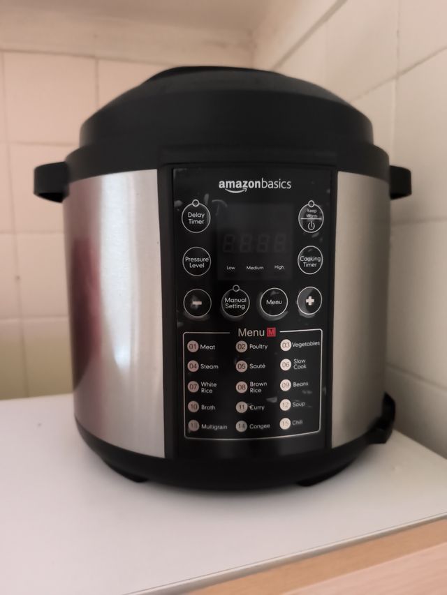 Detalles del productoOlla de cocción rápida Amazon Basics con múltiples funciones.