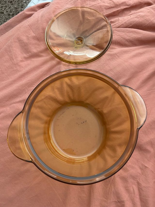 Cazuela de vidrio Visions Flare de color ámbar. Incluye tapa.