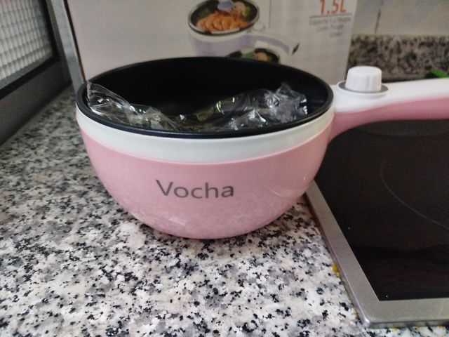 Preciosa olla eléctrica Vocha de 1.5L, color rosa. Ideal para cocinar fácilmente. - Capacidad: 1.5 litros. - Color rosa. - Marca: Vocha. - En perfecto estado.