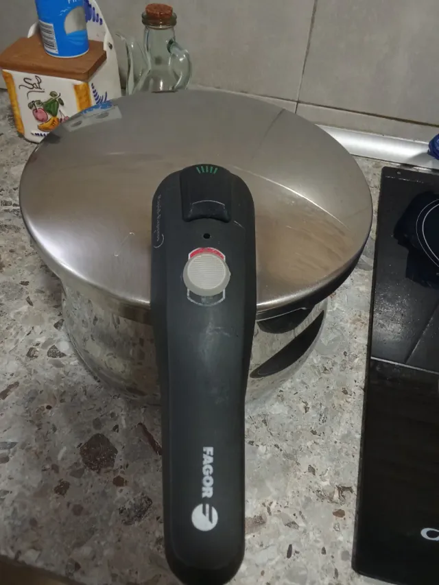 Olla a presión Fagor de acero inoxidable. Ideal para cocinar de forma rápida y eficiente.
