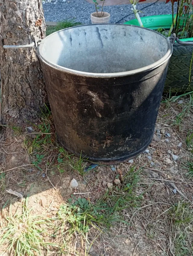 Detalles del productoOlla grande de metal, ideal para cocinar a leña o fuego directo.embotar,o el uso que se quiera dar,hay que limpiar por fuera de hay el precio,con buen asa para agarrar ,entrego en mano en Ortuella,medidas profundidad 37cm, diámetro 47cm