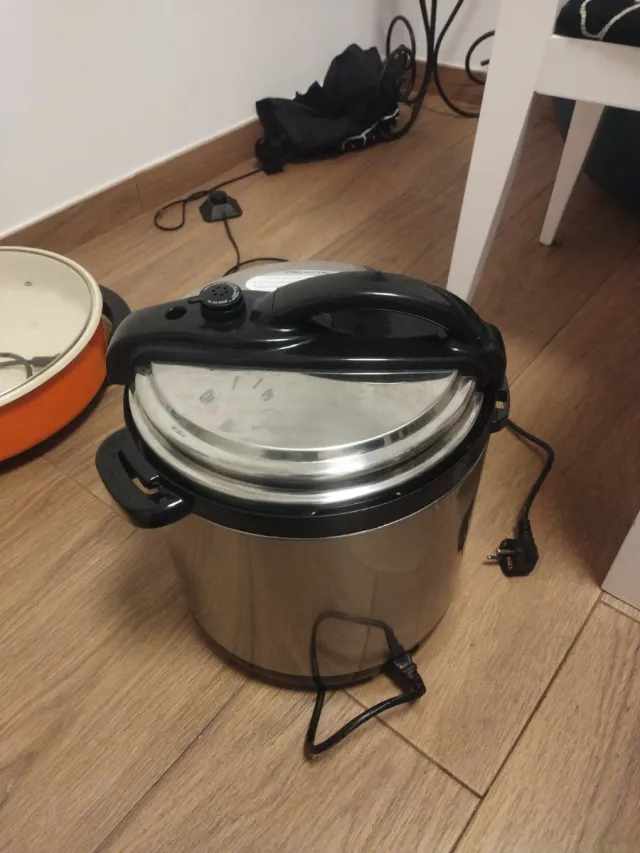Olla rápida eléctrica de acero inoxidable. - Diseño moderno y funcional. - Asa de transporte ergonómica. - Tapa con cierre de seguridad.