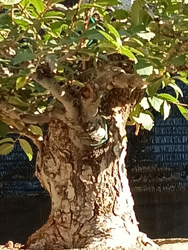 Detalles del productoOlmo Pumila del año 2004. Un árbol con un tronco robusto y corteza texturizada.