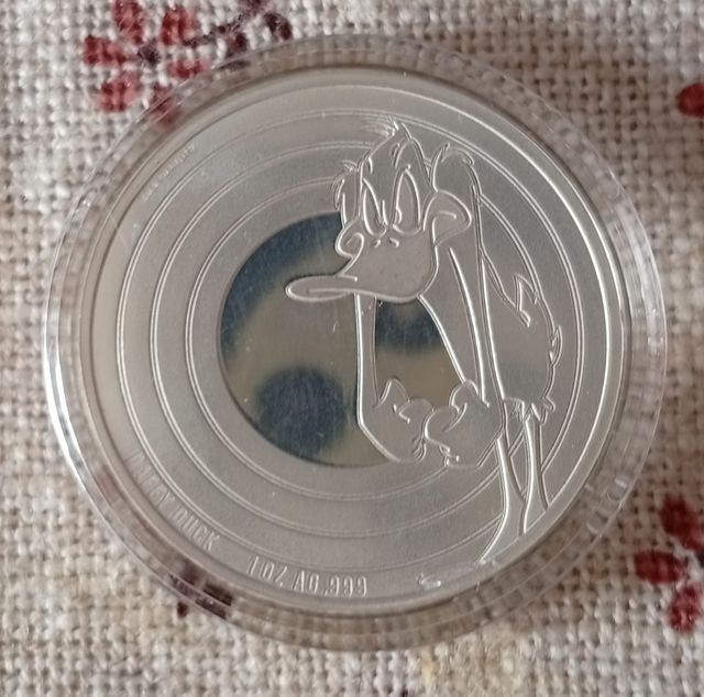 Detalles del productoOnza de plata con la imagen del Pato Lucas.