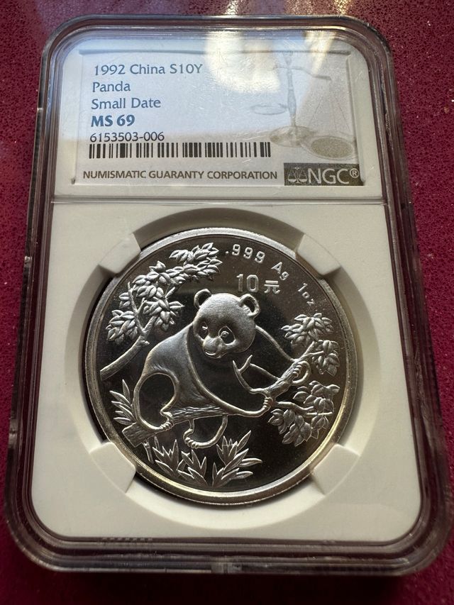 Detalles del productoMoneda de plata de la onza Panda de China de 1992, certificada por NGC en un grado de MS 69