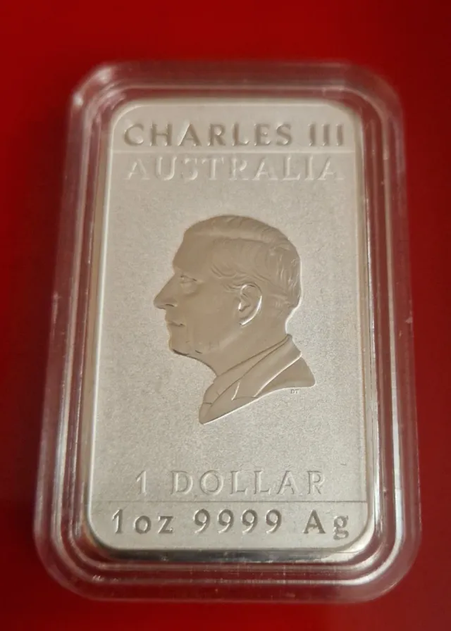 Onza de plata pura 2024 Carlos III y el Australia. - Plata 9999. - Valor nominal de 1 dólar australiano. - Peso de 1 onza troy.