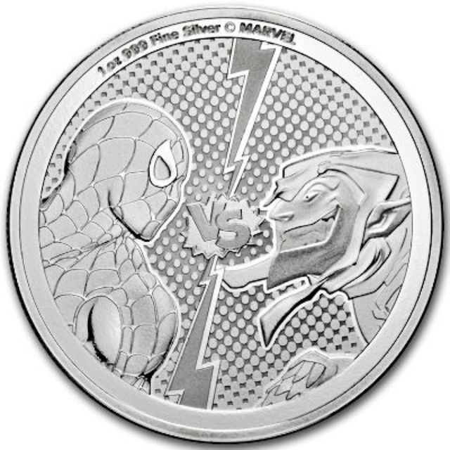 Detalles del productoPreciosa moneda de plata de una onza con diseño de Spiderman contra Green Goblin. Es una pieza realmente genial para coleccionistas.