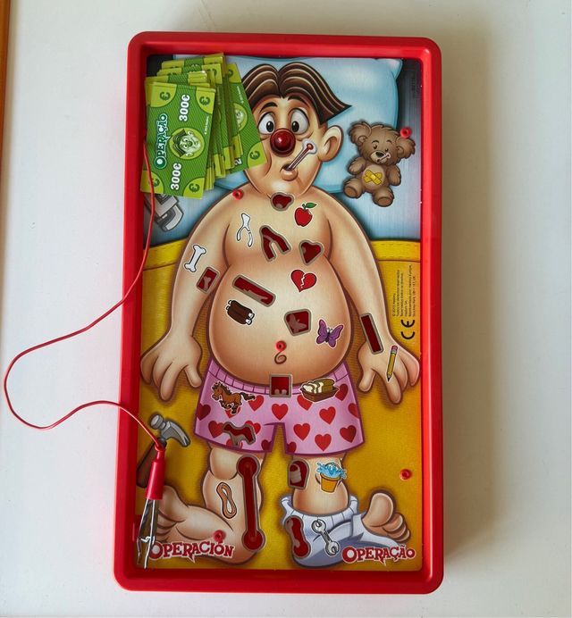 Detalles del productoJuego de mesa Operación en buen estado. Incluye todas las piezas que se ven en la imagen, además de varias tarjetas de dinero del juego. ¡Perfecto para divertirse en familia!
