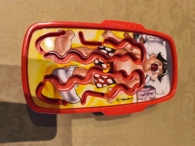 Juego de mesa Operación, un clásico para toda la familia. - Tablero con diseño del paciente. - Piezas de juego. - Pinzas para extraer las afecciones.