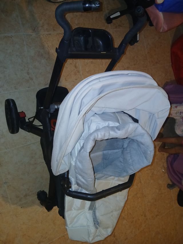 Detalles del productoVendo cochecito de bebé ligero y fácil de plegar. Es de color beige y negro, y está en buen estado.