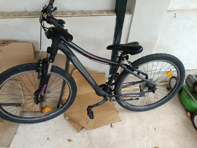 Bicicleta Orbea Sport 30 en color negro y detalles en rosa. - Cuadro de aluminio. - Ruedas de 27 pulgadas. - Frenos de disco. - Suspensión delantera.