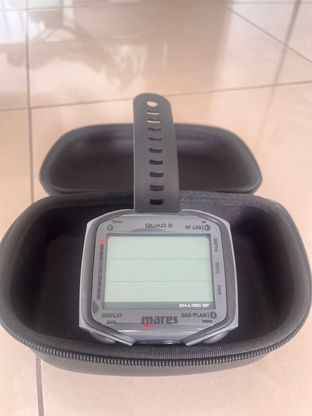 Ordenador de buceo Mares Quad 2 con carcasa protectora. - Pantalla digital. - Correa ajustable. - Botones de control.