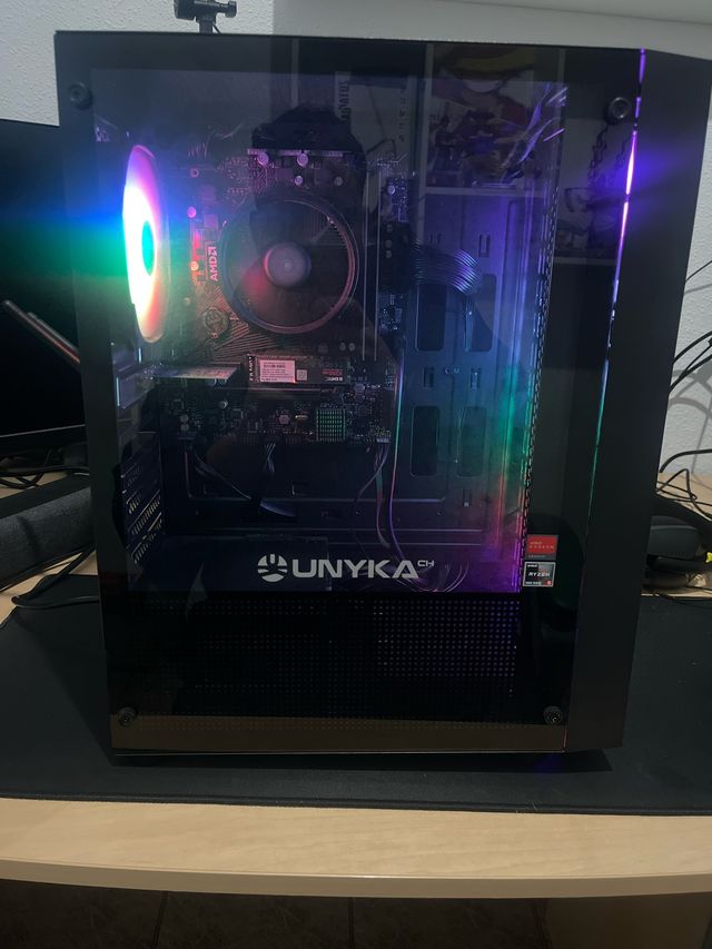 Detalles del productoOrdenador de sobremesa listo para jugar, con un diseño moderno y luces RGB.