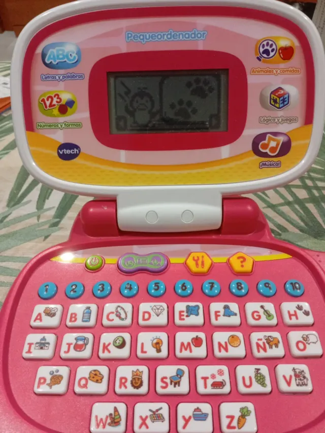Detalles del productoOrdenador infantil Vtech con pantalla y teclado.