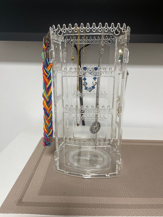 Detalles del productoEste organizador de joyas es perfecto para mantener tus accesorios ordenados y a la vista. Su diseño giratorio facilita el acceso a todas tus piezas.