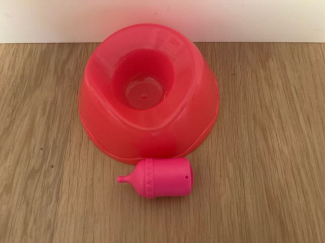 Set de orinal y biberón en color rosa. - Orinal de plástico. - Biberón de plástico