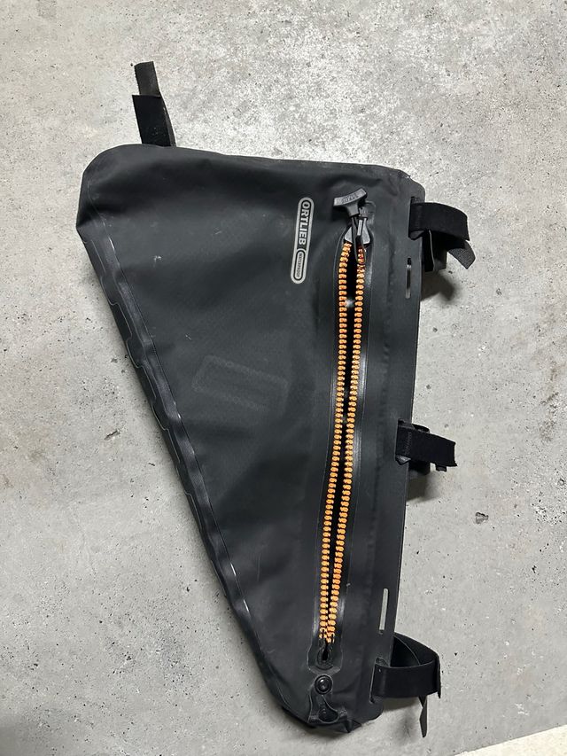 Detalles del productoBolsa de cuadro Ortlieb de 6 litros en buen estado. Ideal para cicloturismo y bikepacking.