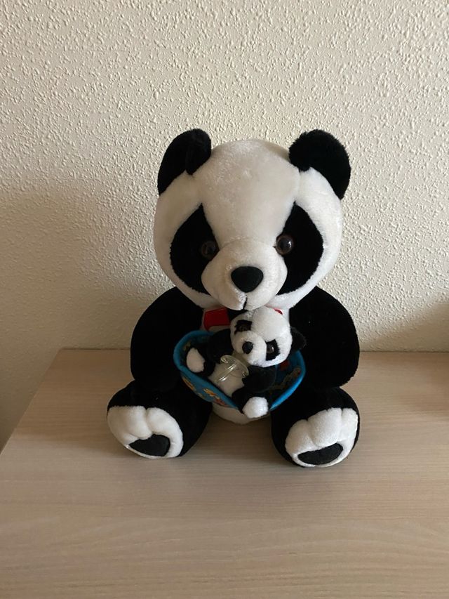 Detalles del productoAdorable osito de peluche con forma de panda, mide 35 cm. Es un peluche suave y tierno, perfecto para abrazar.