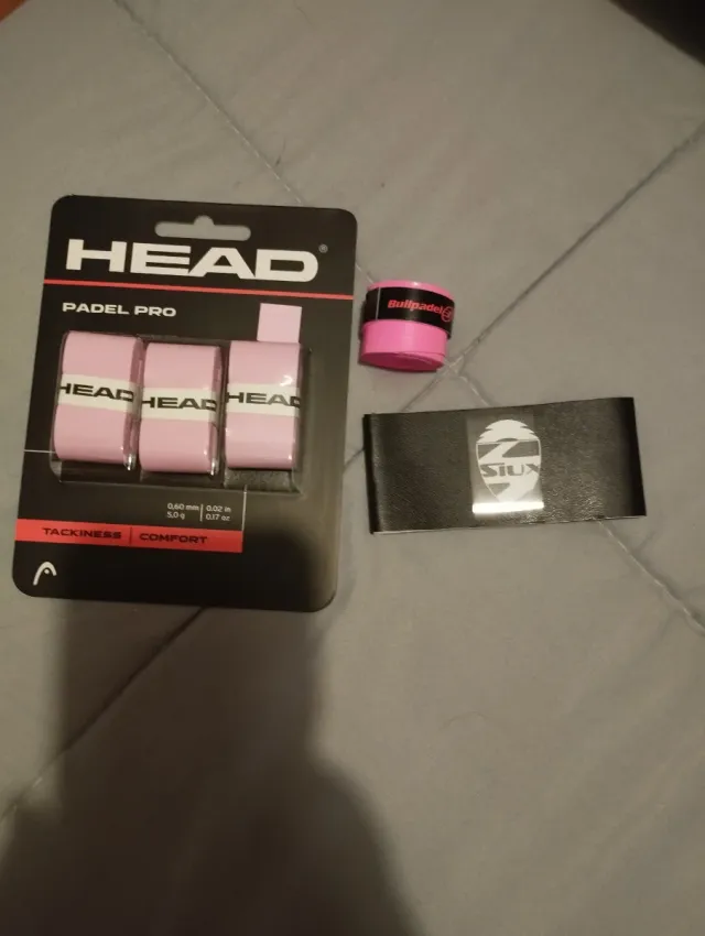 - Tres overgrips HEAD Padel Pro en color rosa.