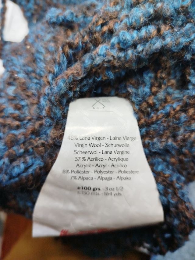 Ovillos de 100 gramos, con 150 metros cada uno. 48% lana virgen, 37% acrílico, 8% poliester y 7% alpaca.