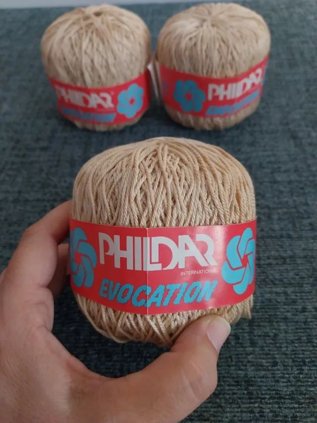 Lote de 3 ovillos de lana Phildar Evocation. Alguna mancha por el paso del tiempo. - Color beige. - Ideal para labores de tejido y ganchillo.