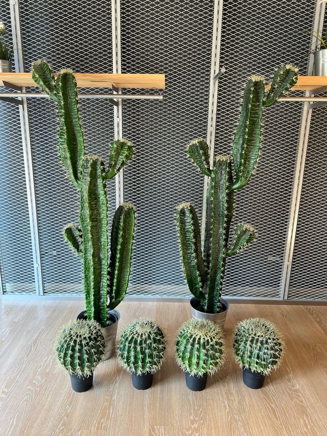 Detalles del productoConjunto de adornos de cactus para decorar tu hogar o negocio. Incluye dos cactus grandes y cuatro cactus pequeños.